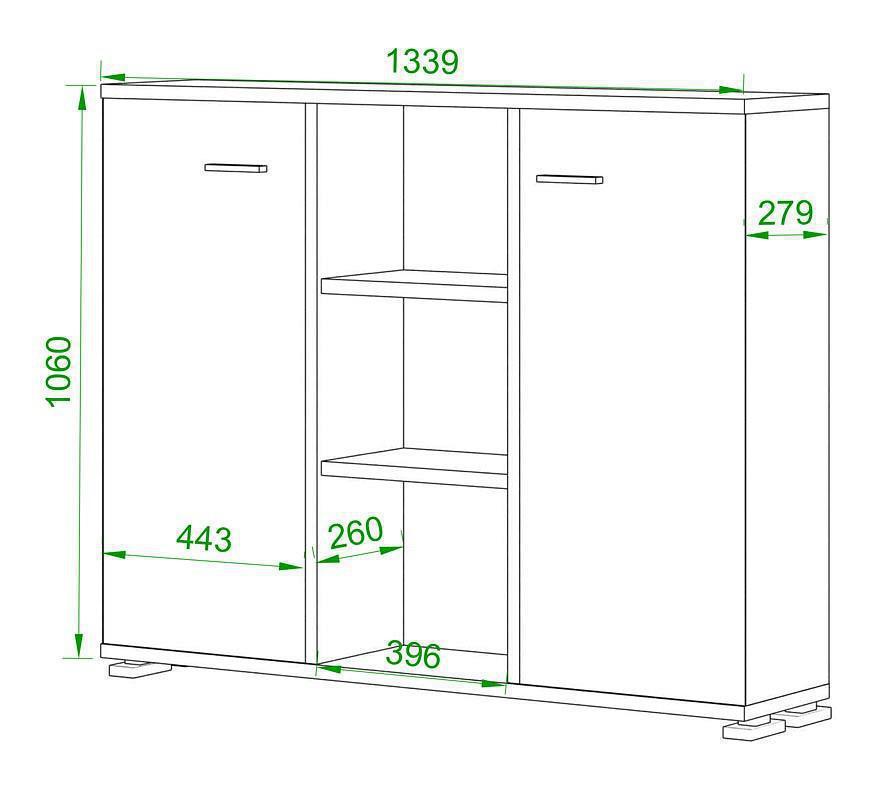 2 дверцы, 6 полок