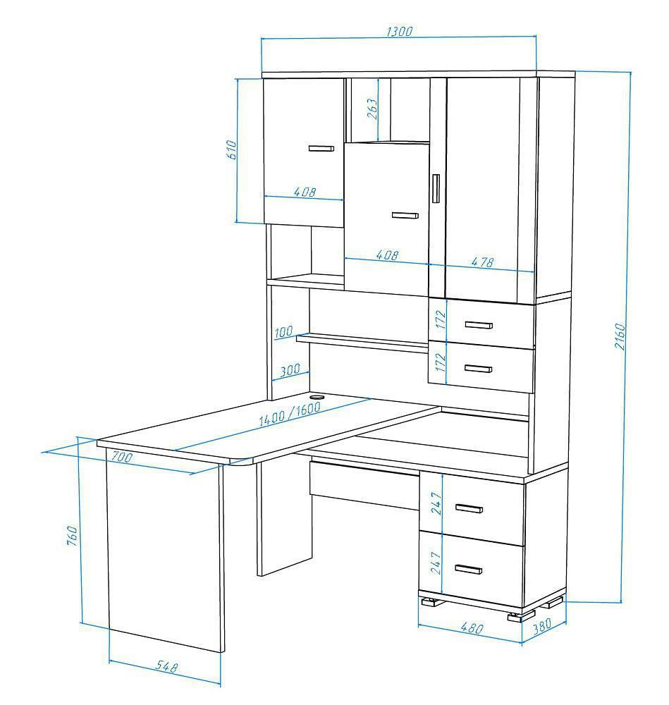В современном мире мало кто обходится без персонального компьютера. Он необходим нам для работы, учебы или просто общения с близкими. Стол компьютерный Домино СР-620/160 – то, что нужно, чтобы сделать качественное рабочее место, позволяющее расположиться с максимальным комфортом. Данная модель создана брендом 2735048, серия «Домино», на продукцию предоставляется гарантия (12 мес.). Матовый корпус изготовлен из прочного и надежного материала (ЛДСП Е1) и отлично впишется в любой интерьер благодаря эффектному оттенку (венге). Столешница, толщина которой составляет 25 мм (материал столешницы), имеет матовый верх, при этом общие габариты компьютерного стола составляют 1300 мм в ширину и 2160 мм в высоту. Производитель также включил в комплект шкаф комбинированный: 3 дверцы, 4 ящика, полки.