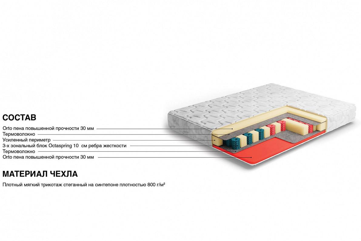 Матрас имеет 3 зоны жесткости для индивидуальной поддержки каждой части тела. Жесткость каждой зоны подобрана таким образом, чтобы обеспечить надежную опору позвоночнику, сохраняя его в правильном положении. Такие свойства матраса с использованием индивидуального зонирования максимально усиливают поддерживающий эффект более тяжелых частей тела и позволяют матрасу хорошо подстраиваться под контуры человеческого тела. Пружины Octaspring из пены высокой плотности имеют структуру медовых сот, благодаря которой вентиляция матраса Спектр в 8 раз выше вентиляции других пенных матрасов. Повышенная воздухопроницаемость пружин Octaspring обеспечивает комфортную свежесть спального места на протяжении всей ночи.
