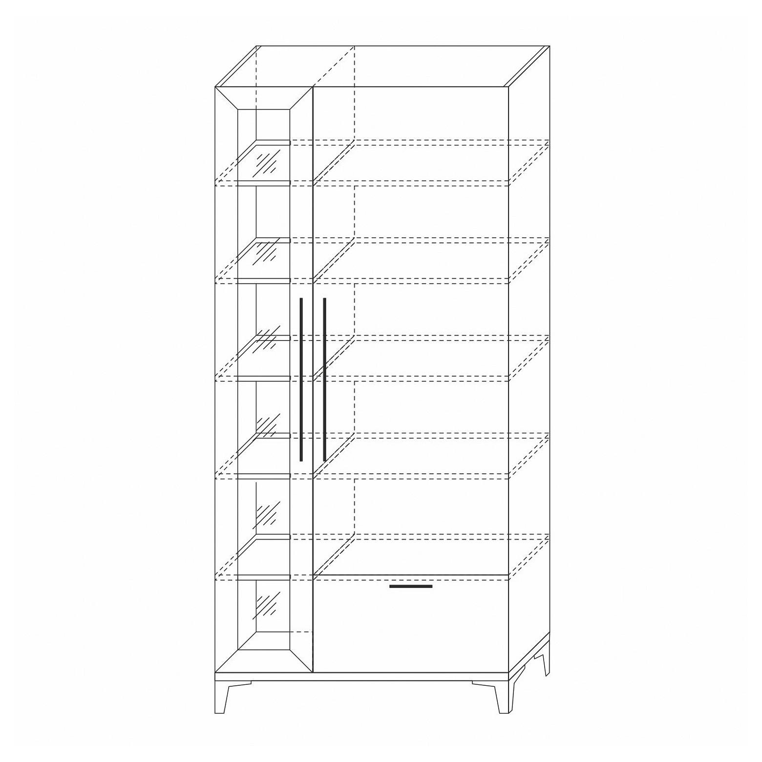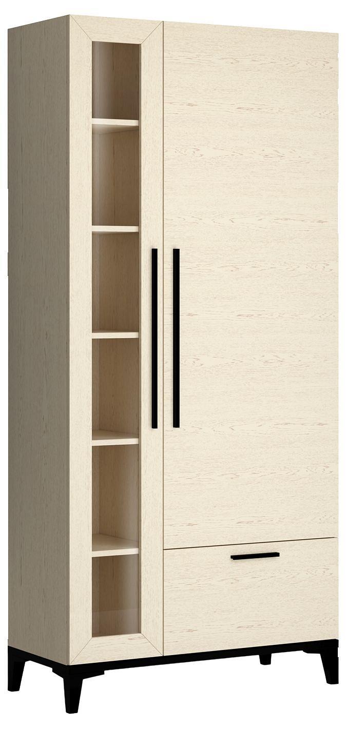Наполнение шкафа-витрины порадует вас своей функциональностью. Отделение со стеклянной дверью включает 5 полочек, на которых прекрасно будут смотреться как книги, так и любимая посуда. Благодаря наличию закрытого отделения с полками и ящика вы сможете бережно хранить вещи.