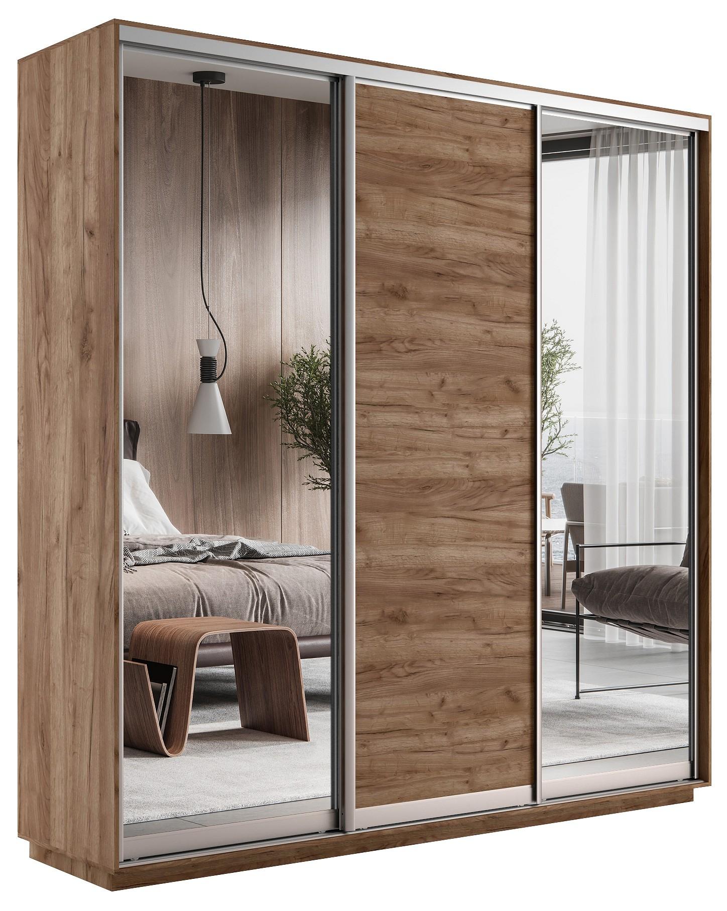 Шкафы-купе 3-х дверный Экспресс Медиум Трио зеркальный, крафт табачный