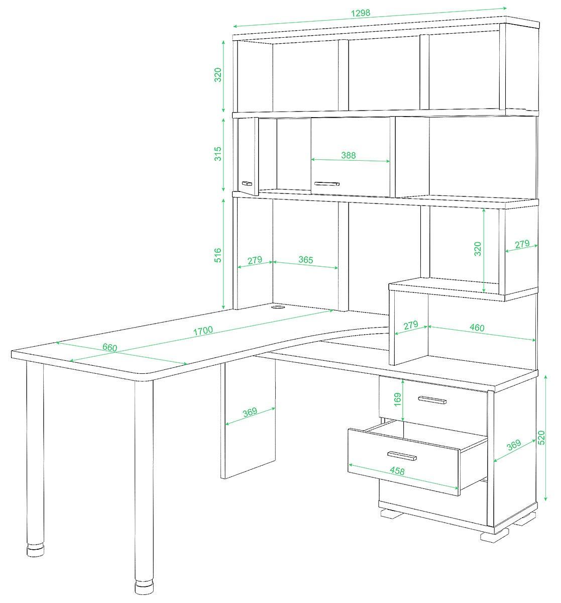 Дети делают на нем домашние задания, взрослые с его помощью зарабатывают деньги – компьютер актуален для всех. Стол компьютерный СР-420/170 MER_SR-420-170_SHKSH-LEV – то, что нужно, чтобы сделать удобное рабочее пространство, которое позволит расположиться с максимальным комфортом. Эта модель создана компанией 2735048, серия «Домино», на товар предоставляется гарантия (12 мес.). Глянцевый, матовый корпус изготовлен из долговечного и практичного материала (ЛДСП Е1) и прекрасно впишется в любой интерьер благодаря эффектному оттенку (карамель, хром, шамони). Столешница, толщина которой составляет 25 мм (материал столешницы), имеет верх, при этом общие габариты компьютерного стола составляют 1300 мм в ширину и 1990 мм в высоту. Производитель также включил в комплект стеллаж: