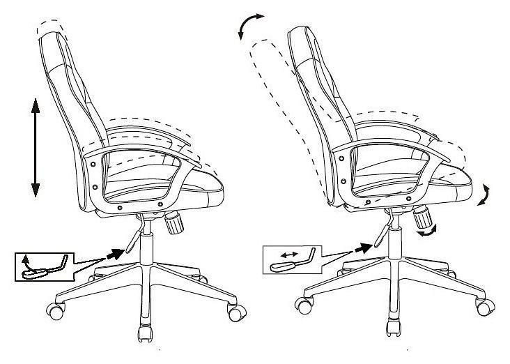 Механизм качания с регулировкой под вес и возможностью фиксации в рабочем положении. Регулировка высоты (газлифт). Подлокотники пластиковые. Крестовина пластиковая.