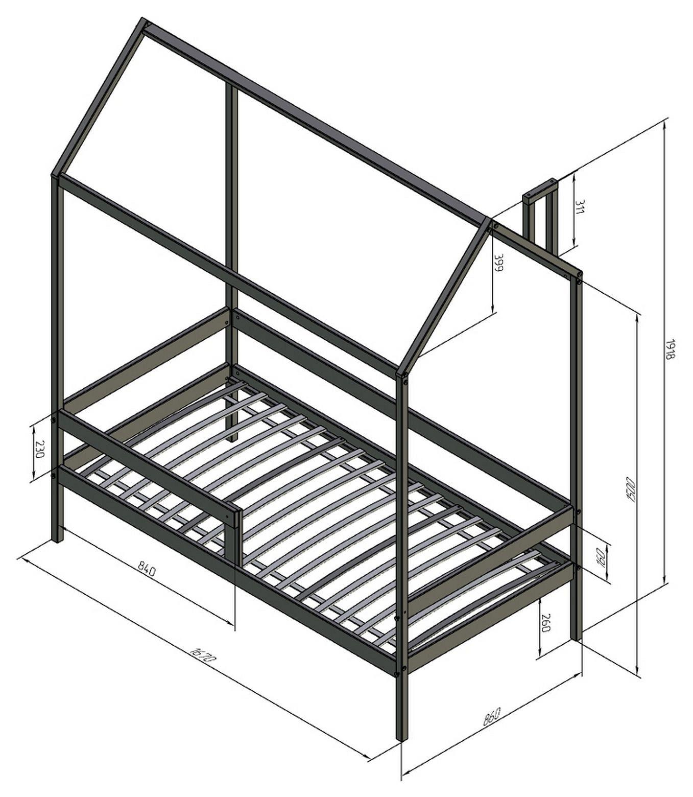 высота крыши - 399 мм,