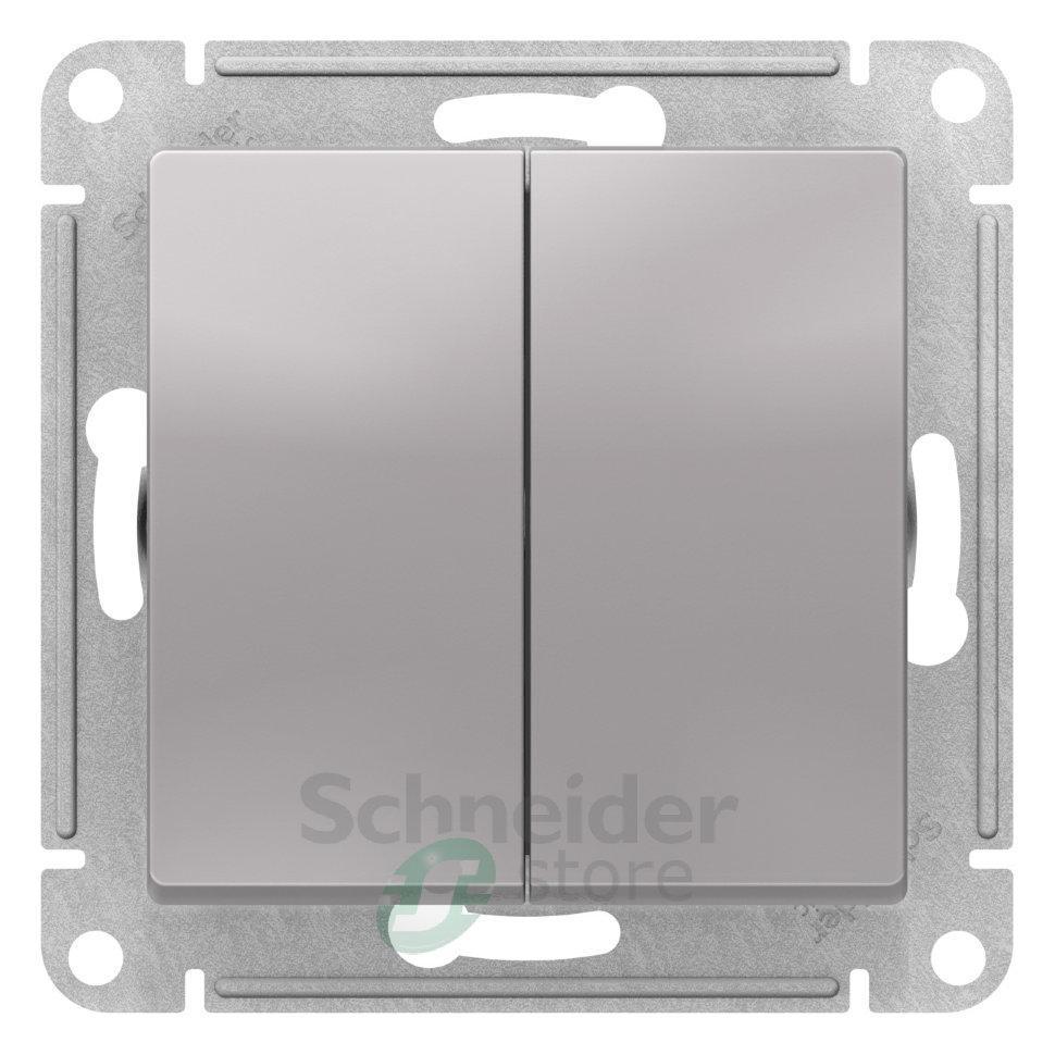 Механизм Schneider Electric AtlasDesign (цвет алюминий) переключателя 2-клавишного подходит для сетей 250 В, на ток 10 А. - Переключатель позволяют управлять одним источником света с двух точек. - Лицевые детали из качественного ABS-пластика, устойчивого к царапинам и УФ-излучению. - Усиленные прямые монтажные лапки для лучшей фиксации механизма в монтажной коробке.