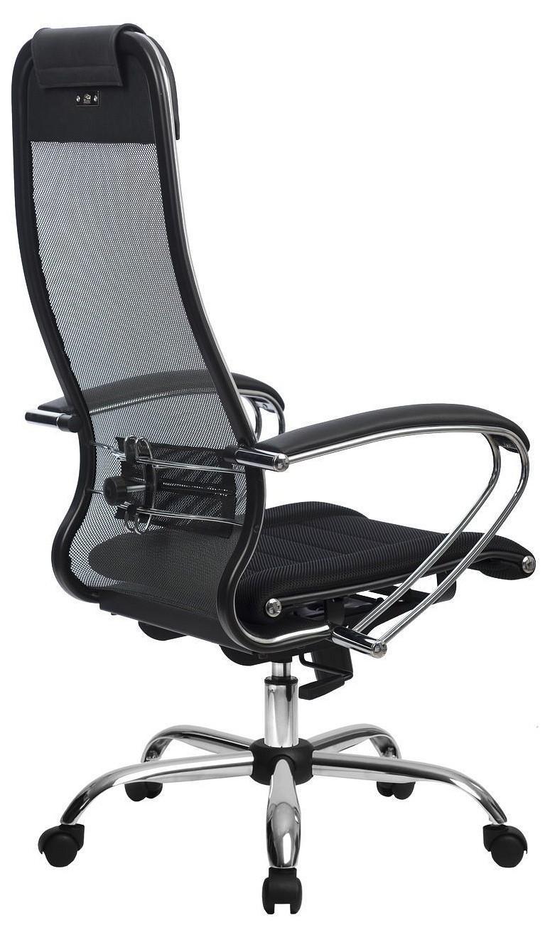 Подлокотники - стальные классические, покрытые зеркальным хромом. Обивка накладок - экокожа.