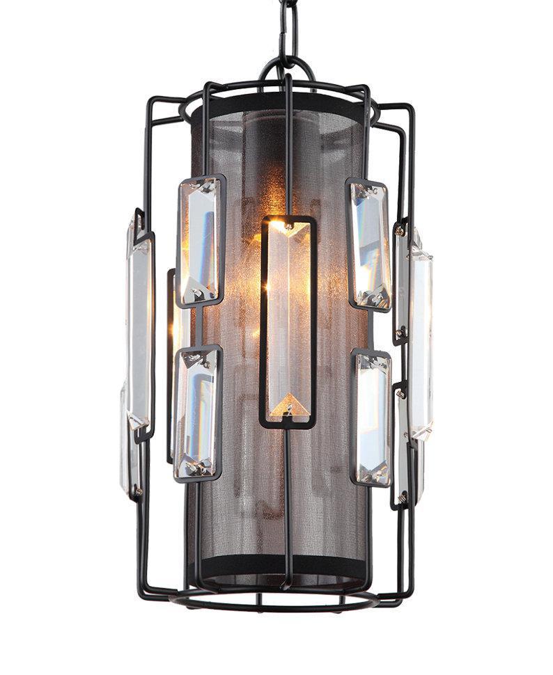 АГЛАЯ. Основа моделей «АГЛАЯ» - металлические прутья черного цвета. Плафону придана форма круглой клетки для птиц и декорирована треугольными, хрустальными призмами. Внутренняя часть плафона затянута воздушной, полупрозрачной тканью. Это придает люстре оригинальный вид, выгодно отличающий ее от других.