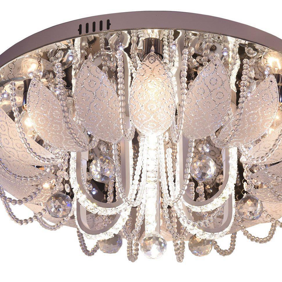 Семь Огней создает продукт от эскиза до готового шедевра. Над созданием светильников трудятся одни из лучших дизайнеров и конструкторов. Наша компания предъявляет высокие требования к производимой продукции, что подтверждено сертификатами качества.ПРЕИМУЩЕСТВАСтильный дизайнНаличие LED подсветкиФункция ночного освещения с низким потреблением электроэнергииУправление функциями люстры с помощью пульта ДУ либо с помощью выключателяПРИМЕНЕНИЕПотолочная люстра предназначена для основного освещения помещенийЛюстра подойдет в гостиную, зал, спальню или кухнюКОНСТРУКЦИЯ И МАТЕРИАЛЫЛюстра изготовлена из высококачественных материалов и является безопасной для человека, животных и окружающей средыИспользуемые материалы:металл, стекло, хрустальИсточник света - лампы накаливания мощностью до 60 Вт, светодиодные лампы мощностью до 12 ВтКрепление - накладным способом, с помощью шуруповУдобный крепеж подойдет под все виды потолков: бетон, гипсокартон, натяжные и деревянные потолки.