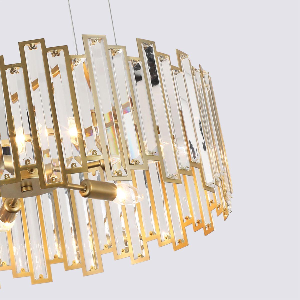 Утонченная модель 4484-6P от немецкой компании F-Promo относится к коллекции Steg и отлично подойдет для установки на потолок в гостиной, оформленной в хрустальном стиле. Подвесная люстра F-Promo Steg 4484-6P с цилиндрическими плафонами осветит помещение площадью 5 кв. м. Производитель F-Promo рекомендует использовать для устройства лампы накаливания с цоколем E14 и мощностью 60 W. Прибор произведен с использованием материалов: хрусталь и металл и может использоваться для натяжного потолка. Основным цветом товара является матовое золото и золотой. Подвесная люстра 4484-6P продается по цене 31900 руб. Торопитесь сделать заказ в интернет-магазине SvetONe.