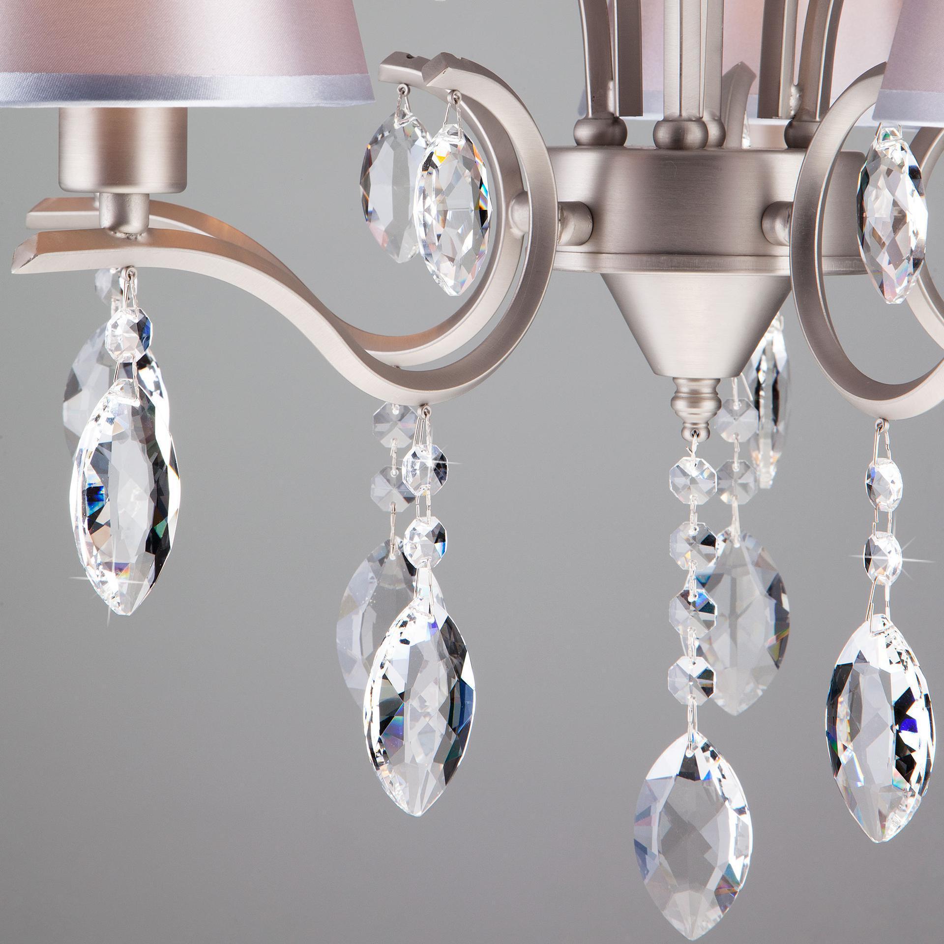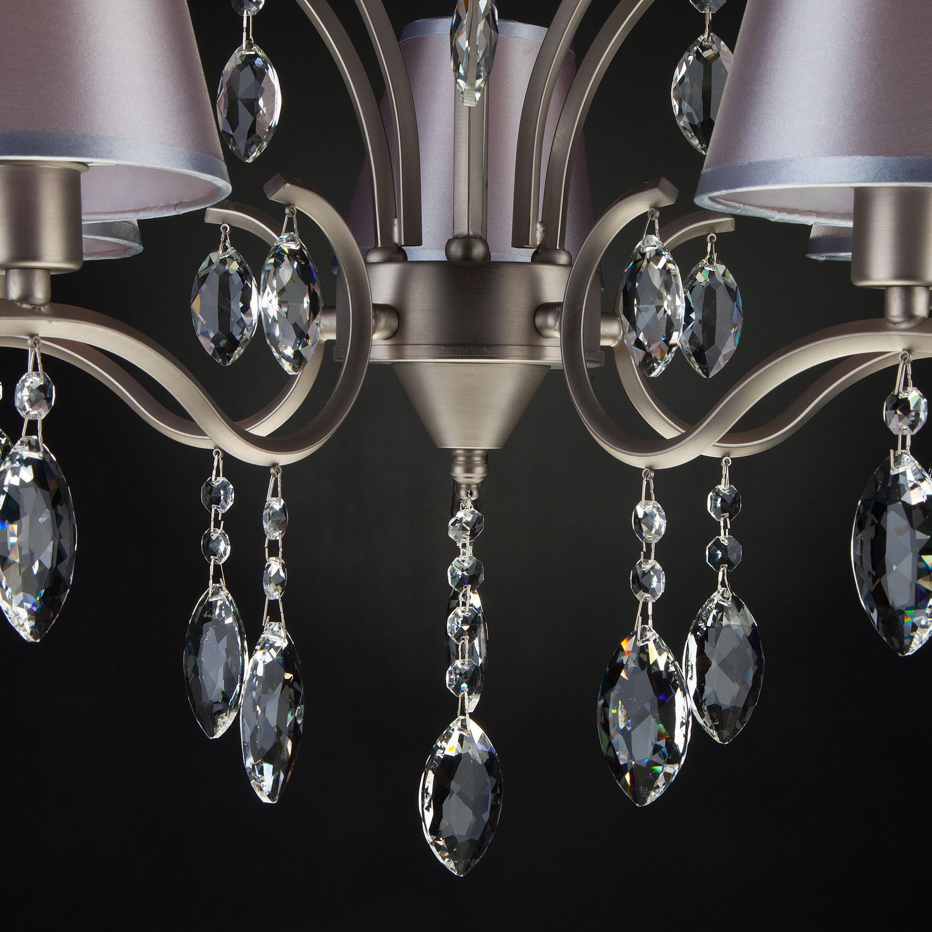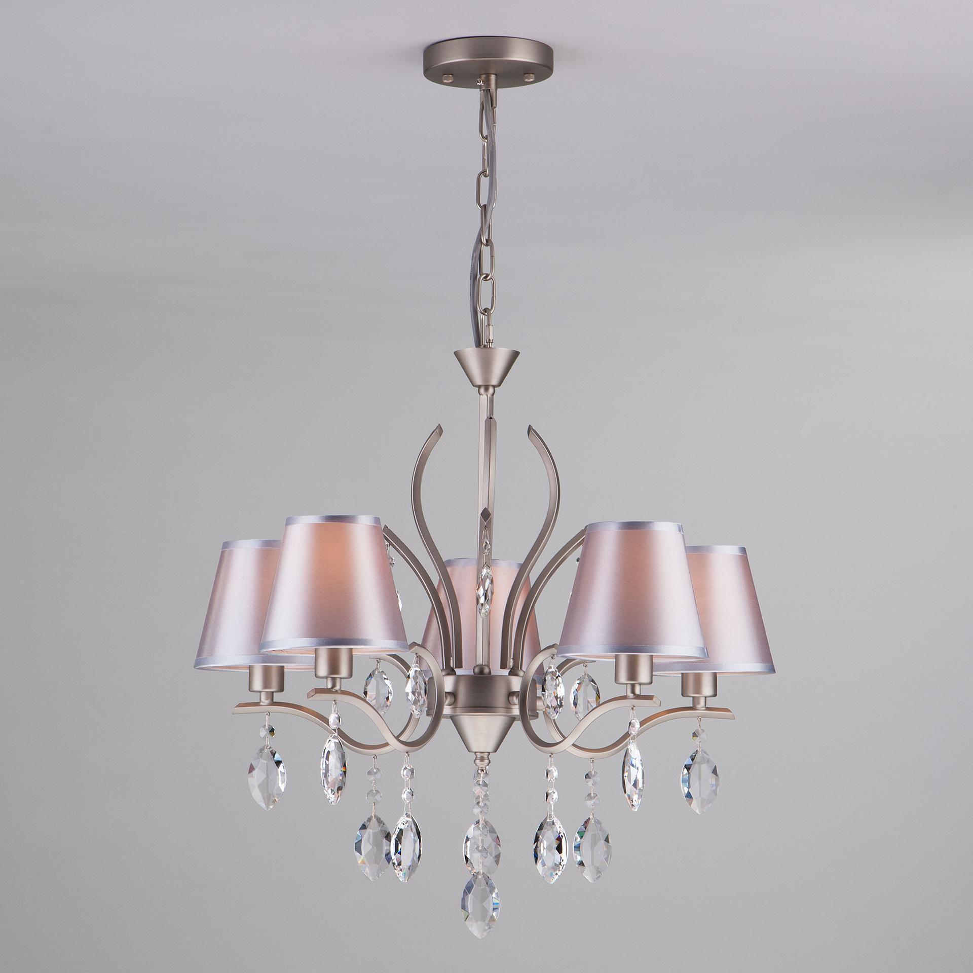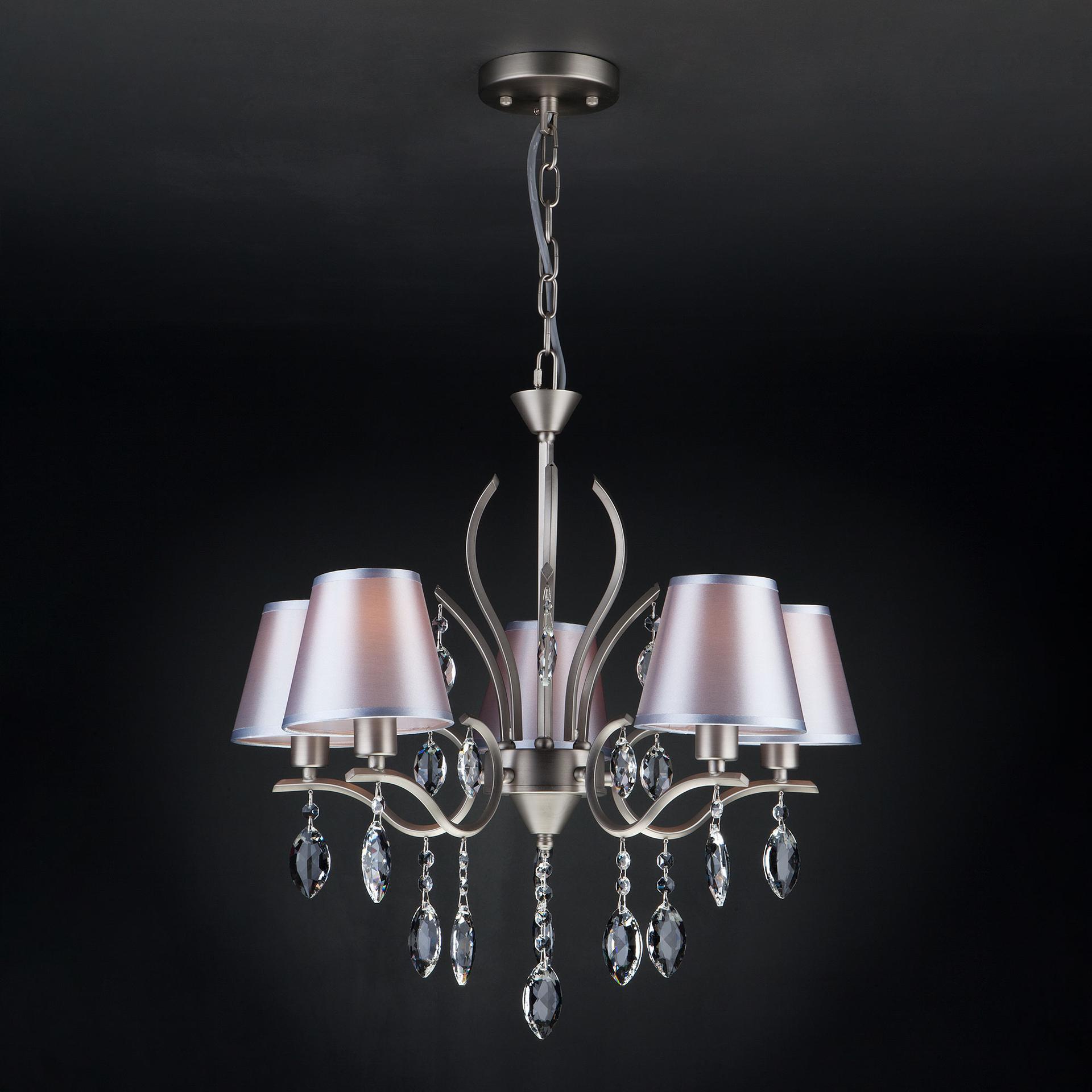 Подвесная люстра с хрусталем 10089/5 сатин-никель/прозрачный хрусталь Strotskis предназначена для создания основного освещения в современных и классических интерьерах, подходит для различных типов помещений: гостиная, спальня и рассчитана на площадь освещения 16м². Роскошная люстра оснащена патронами с цоколем Е14, которые рассчитаны на максимальную мощность ламп 40 Вт. Люстра украшена эффектным декором из хрусталя и дополнена выразительными тканевыми абажурами. Арматура изготовлена из высококачественного металла с надежным защитным покрытием. Дизайн серии «Aurelia» продуман до мелочей: серебряные абажуры идеально сочетаются с основанием цвета сатин-никель, а хрустальные подвески делают образ целостным и гармоничным. В нашем интернет-магазине вы можете купить подвесную люстру по выгодной цене.
