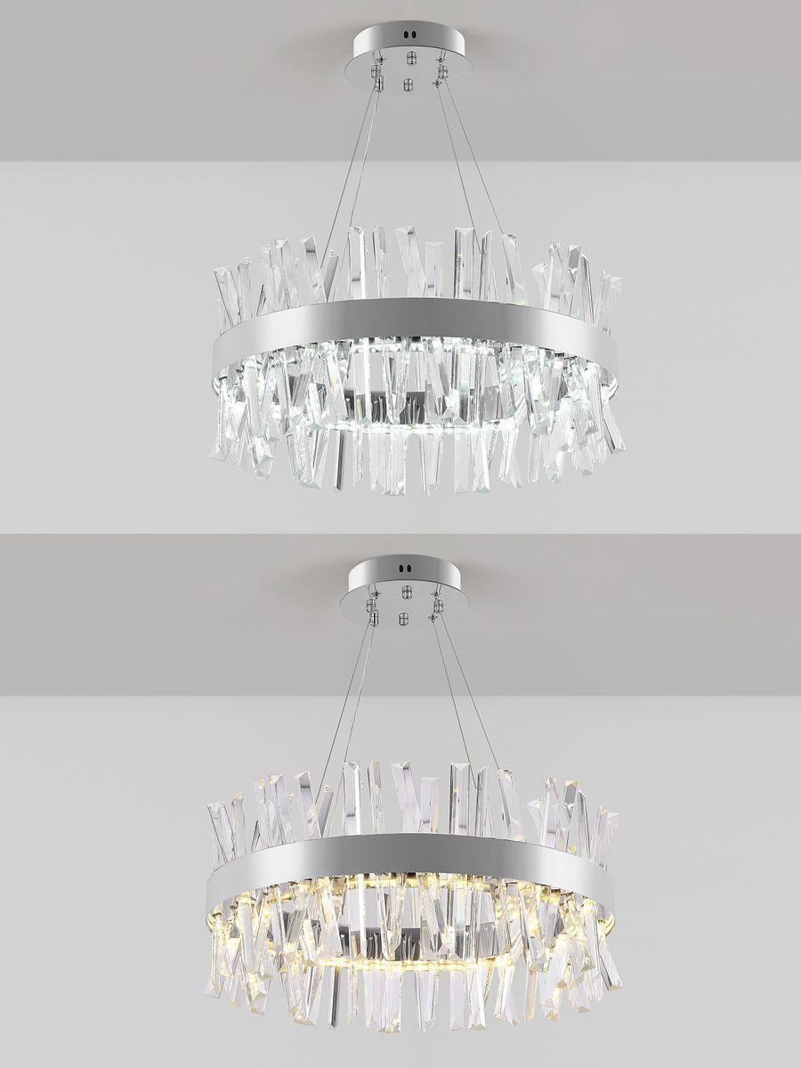 Утонченная модель Innovation Style 83048 от немецкой компании Natali Kovaltseva относится к коллекции Smart Нимбы и отлично подойдет для установки на потолок спальни, оформленной в стиле модерн. Подвесной светодиодный светильник Natali Kovaltseva Smart Нимбы Innovation Style 83048 с цилиндрическими плафонами осветит помещение площадью 18 кв. м. холодным светом. Осветительный элемент встроен в конструкцию и не требует приобретения дополнительных лампочек. Прибор произведен с использованием материалов: хрусталь и металл и может использоваться для натяжного потолка. В комплект поставки входит пульт дистанционного управления. Основным цветом товара является хромовый и серебристо-стальной. Торопитесь сделать заказ в интернет-магазине SvetONe.