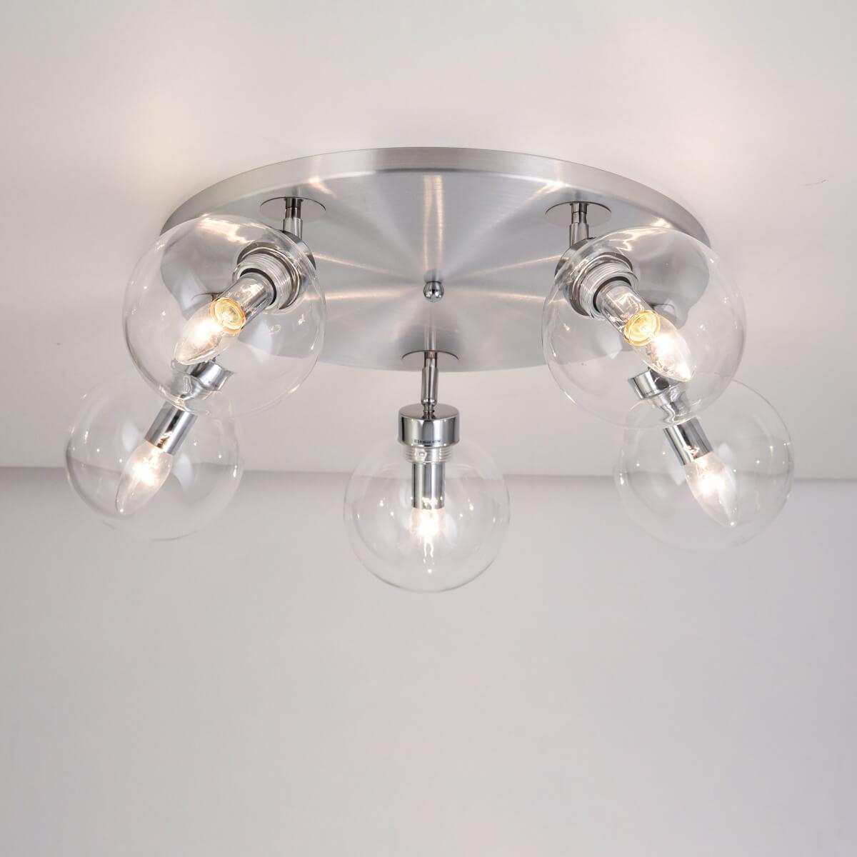 Исключительная модель CL158150 от данийской компании Citilux относится к коллекции Самба и отлично подойдет для установки на низкий потолок в гостиной, оформленной в современном стиле. Потолочная люстра Citilux Самба CL158150 с плафонами в виде шаров осветит помещение площадью 12 кв. м. Производитель Citilux рекомендует использовать для устройства лампы накаливания с цоколем E14 и мощностью 40 W. Прибор произведен с использованием материалов: стекло и металл и может использоваться для натяжного потолка. Основным цветом товара является хромовый и прозрачный. Потолочная люстра CL158150 продается по цене 5990 руб. Торопитесь сделать заказ в интернет-магазине SvetONe.