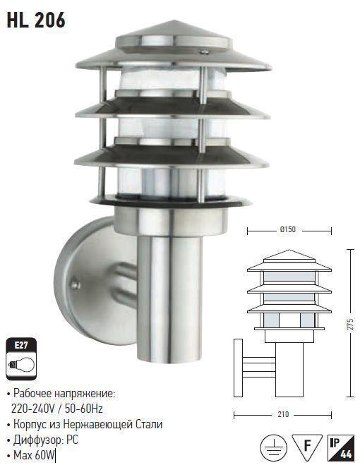 Данный садово-парковый светильник компании HOROS ELECTRIC хорошо подойдет для освещения небольших территорий, например, беседок или площадок перед домом. Купить его можно, сделав заказ на официальном сайте производителя, не забывая при этом указывать артикул товара HL206. Светильник имеет оригинальный дизайн. Такие светильники прослужат долго за счет своего материала изготовления – нержавеющей стали.