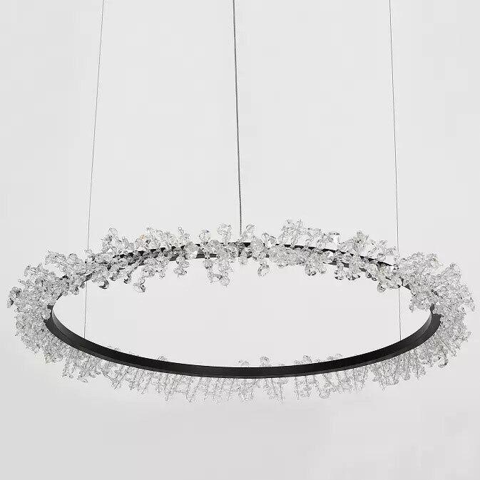 Данная модель входит в состав коллекции Halo Crystal Pendant и исполнена в стиле модерн. Светильник имеет высоту 1300 мм и диаметр 1500 мм. Работает при напряжении 230 V.