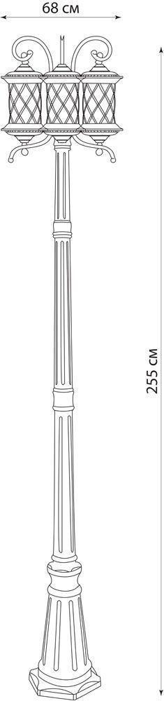 Светильник садово-парковый, серии «Тироль» (НТУ) FERON PL5039  3*100W, E27, 230V, IP44, цвет черное золото, цилиндр, столб большой, 680*680*2550мм