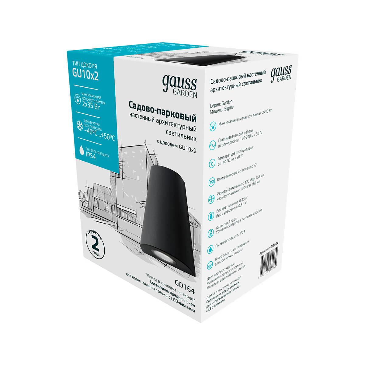 Уличный настенный светильник Gauss Sigma GD164