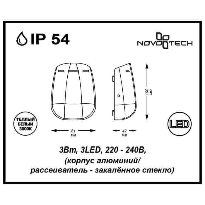 Уличный настенный светодиодный светильник Novotech Kaimas 357411