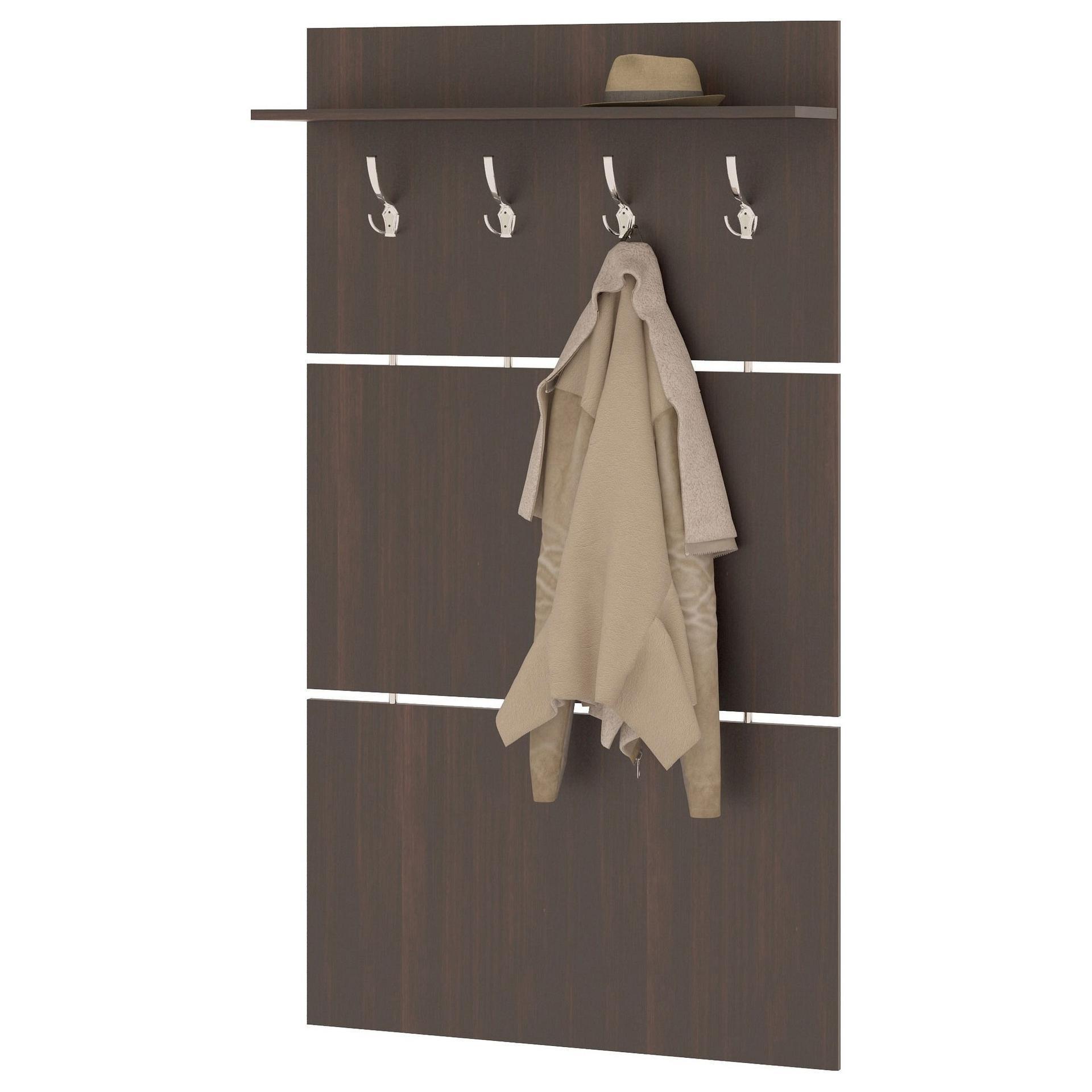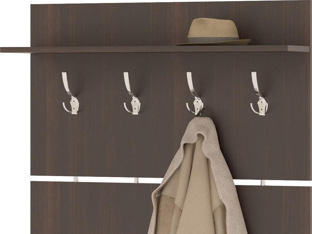 Широкая навесная вешалка, выполненная в строгом стиле, позволит разместить сезонную одежду всей семьи.